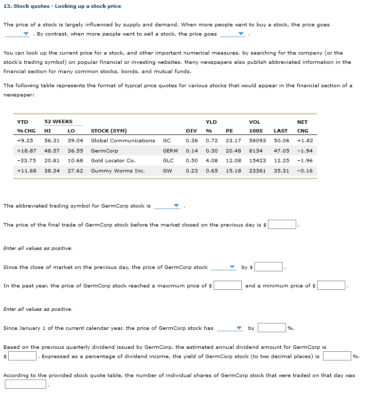 Solved 13 Stock Quotes Looking Up A Stock Price The Price Chegg Com